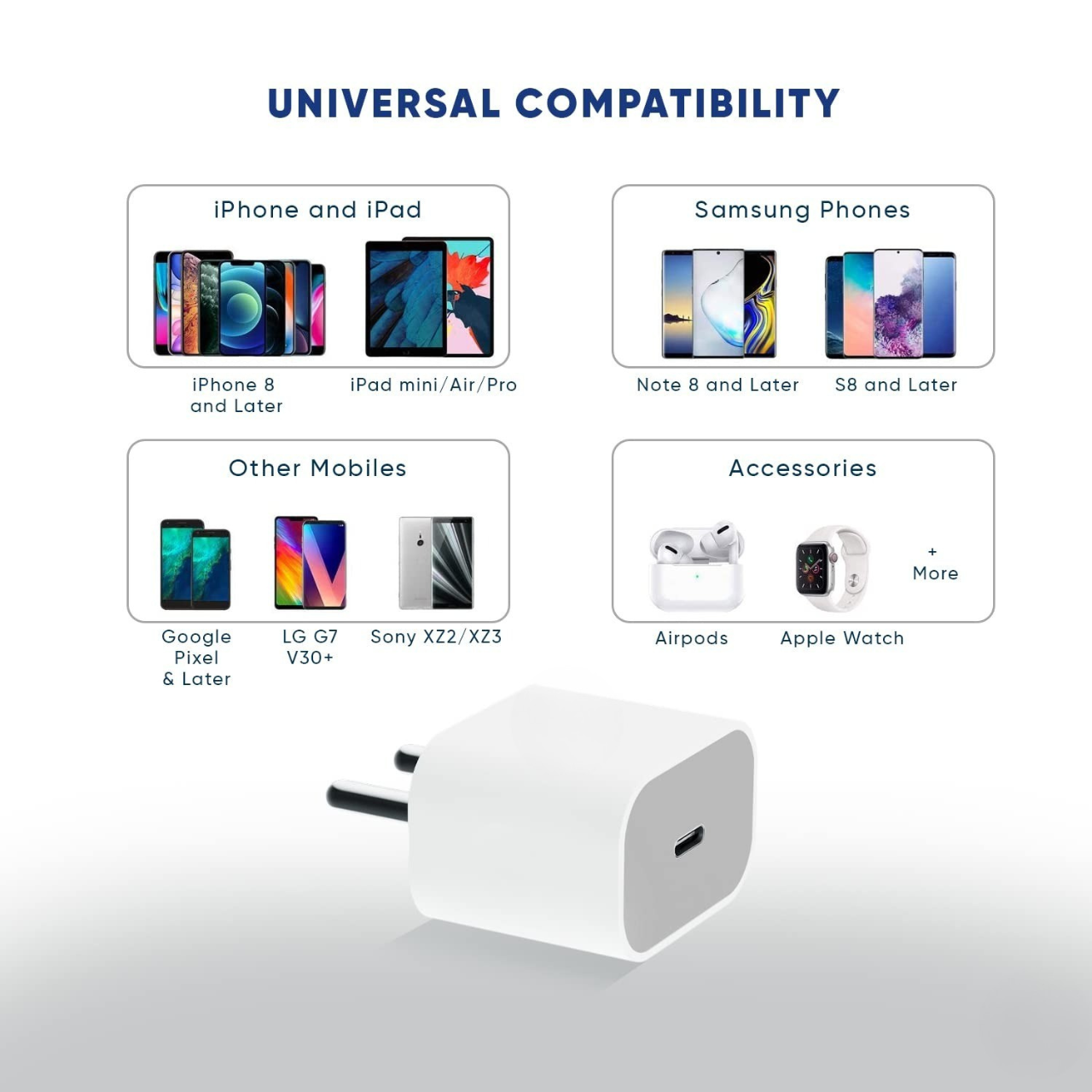 - Fast Charging Support:- Delivers up to 20W Power Delivery (PD) for rapid charging. Charges iPhones up to 50% in 30 minutes with a USB-C to C cable. Supports fast charging for compatible Android devices via USB-C to USB-C.